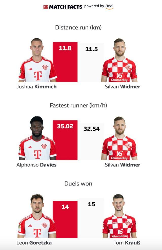 还有一组很反常的数据:继续踢右后卫的基米希是全场唯一触球过百的,达到105次,而且跑动距离一如既往地全队(全场)第一,达到11.68公里(都是根据OPTA,不是德甲官网),戈雷茨卡97次触球第2,莱默89次第3,两名中后卫罕见地球权都很低,德利赫特只有触球61次,踢了74分钟的戴尔也只有60次。